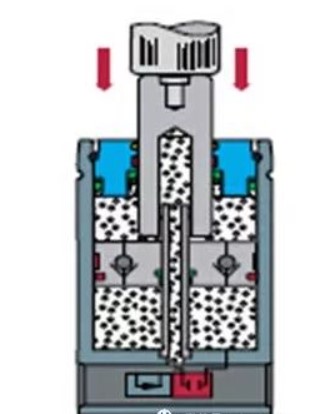 再次打开开闭阀(见图3),上气室的氮气通过内活塞杆返回到下气室,活塞杆开始从下止点向上止点缓慢回程。